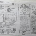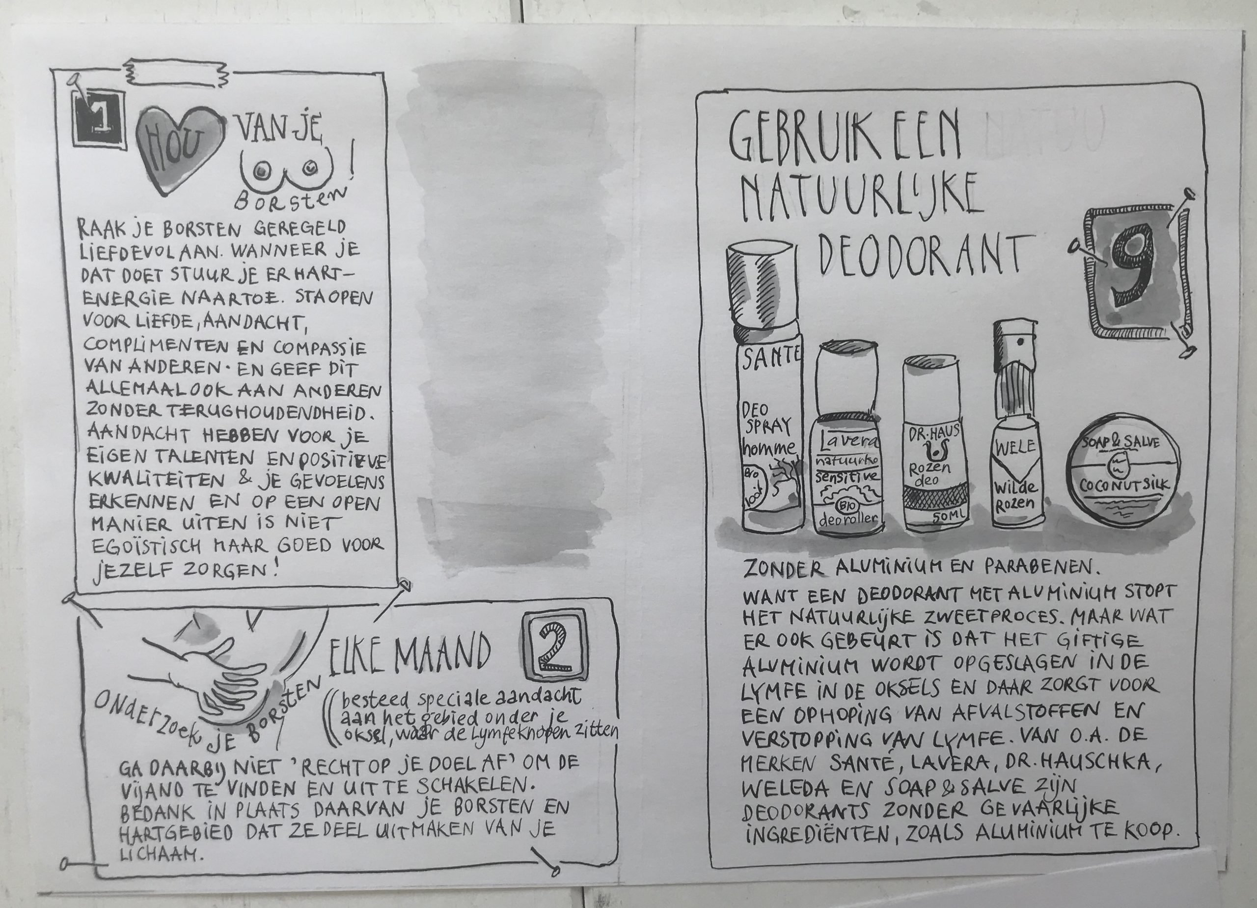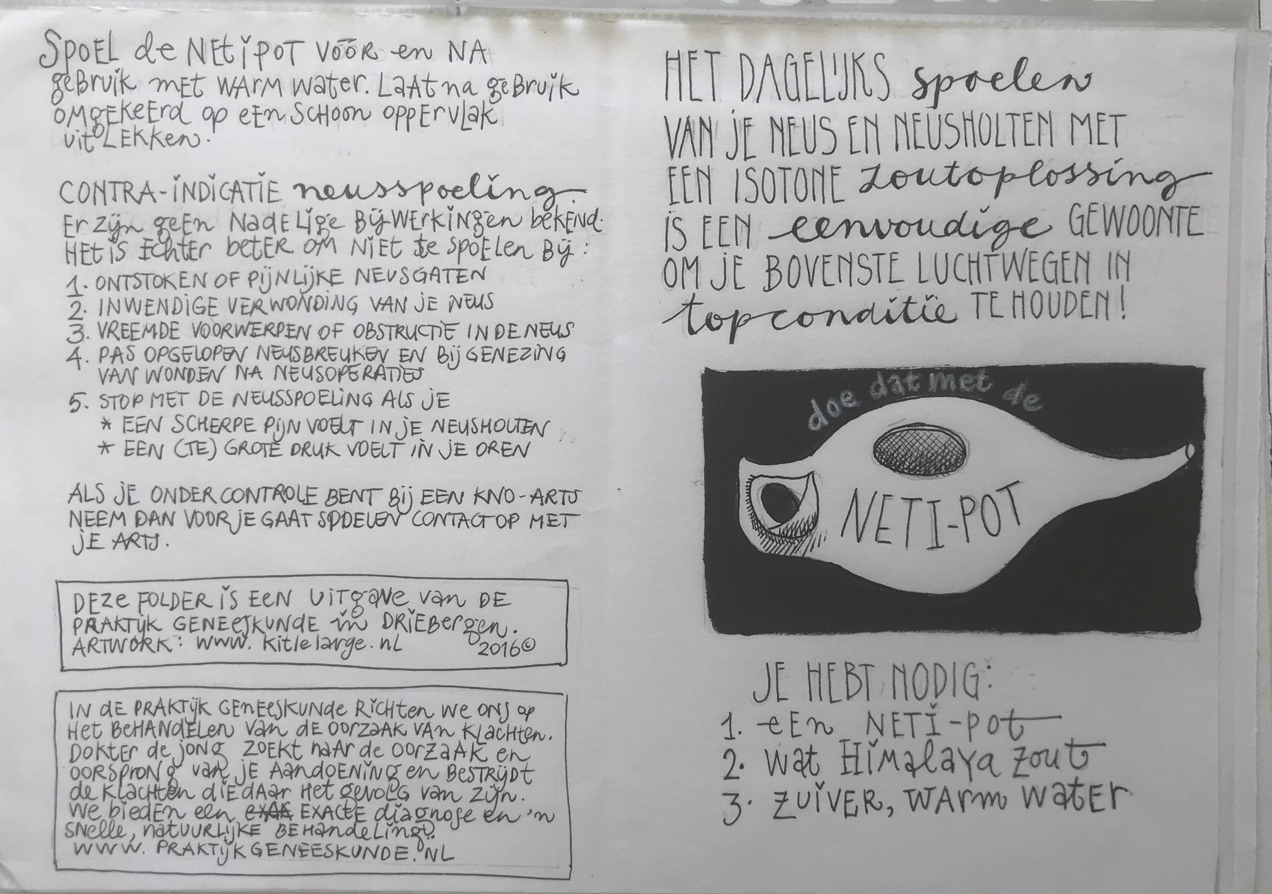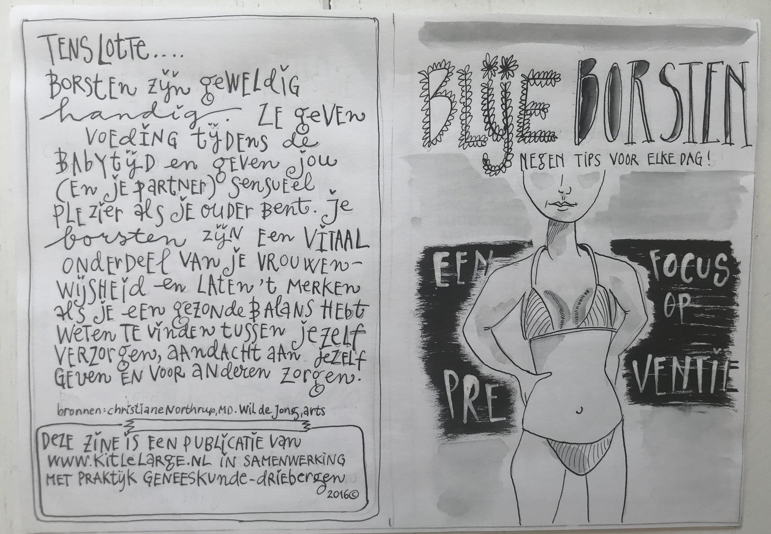 Ik heb eerder al Zines mogen tekenen in opdracht voor de gasten van een B&B over het huisje en de omgeving. Voor een dokterspraktijk maakte ik een Zine over het gezond houden van je borsten en een Zine over het gebruik van de Netipot. Andere Zines in opdracht vertelden over een nieuw geopende wolwinkel, een modewinkel en voor een bakkerij ontwikkelde ik een placemat vol tekeningen van de bakkende bakker.