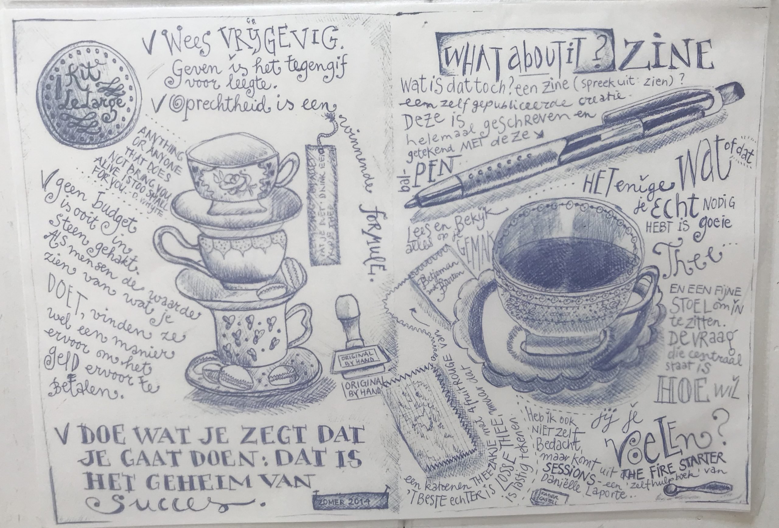 Laat mij een Zine tekenen. Zines staan vol tekeningen en handgeschreven tekst over een bepaald onderwerp of gericht op een thema. Dat kan van alles zijn. Ik maak jouw Zine onder andere met vulpen en inkt waardoor de tekening meer karakter krijgt. Meer dan bij een digitale tekening en dat maakt een Zine heel persoonlijk. Naast pen en inkt gebruik ik aquarelverf, aquarelpotloden en pastelpotloden om een unieke en kleurrijke Zine te maken.